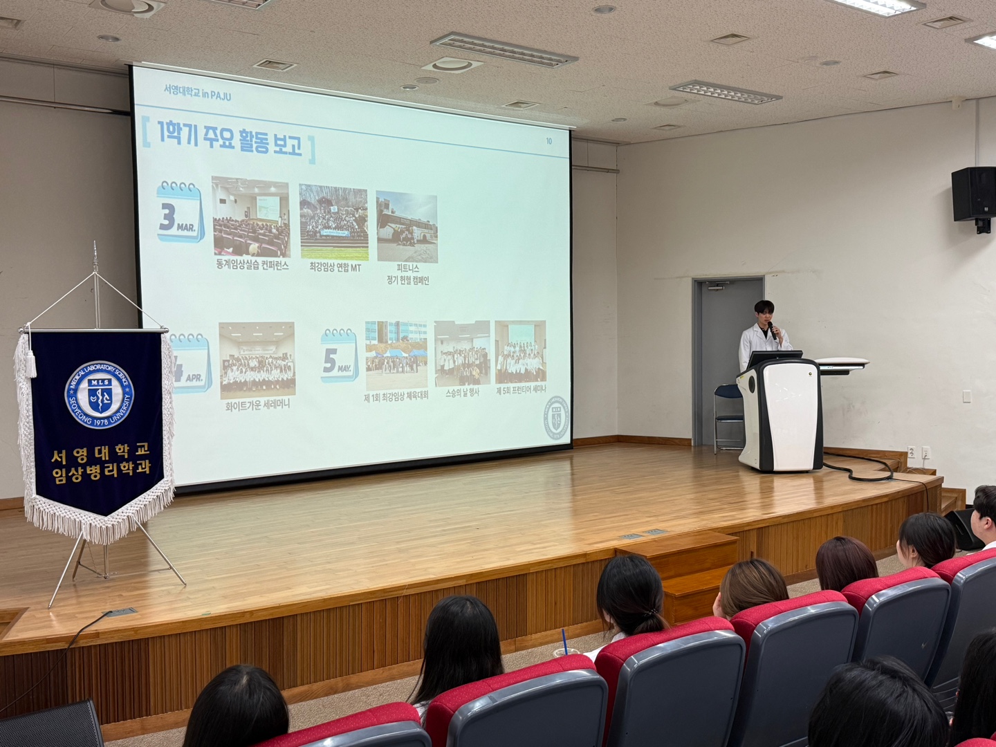 1학기 신입생 WELCOME CEREMONY를 시작으로, 3학년 동계임상실습 컨퍼런스, 1학기 최강임상 개강총회, 2025 강임상 연합MT, 상반기 피트니스 정기헌혈캠페인, 제 6회 White Gown Ceremony, 제 1회 최강임상 체육대회, 2학년 제 5회 프런티어진단의과학세미나, 3학년 AHA BLS-Provider 교육까지, 바쁘지만 알찼던 한 학기 일정을 돌아보는 시간을 가졌다.