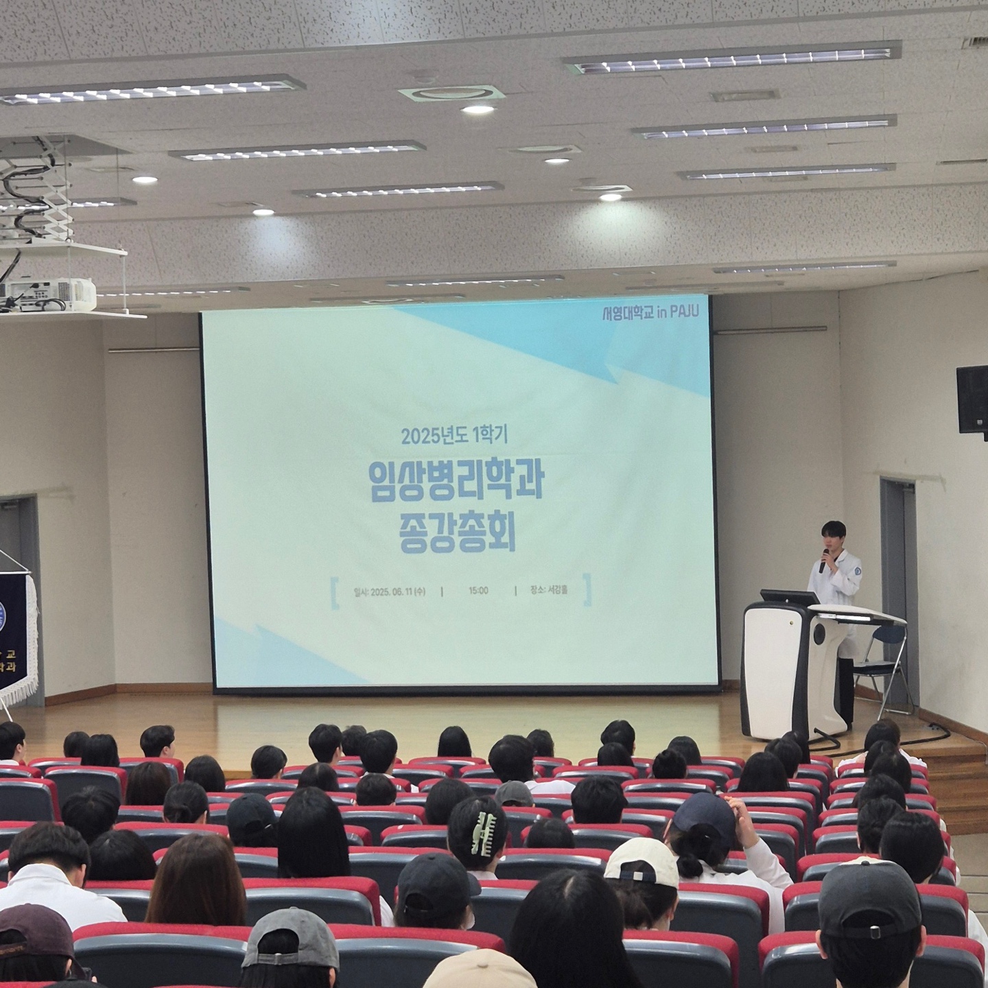 지난 11일 오후, 이번 학기를 돌아보는 2025년도 1학기 최강임상 종강총회가 우리 대학 서강홀에서 1, 2, 3학년 재학생이 모인 가운데 진행되었다.