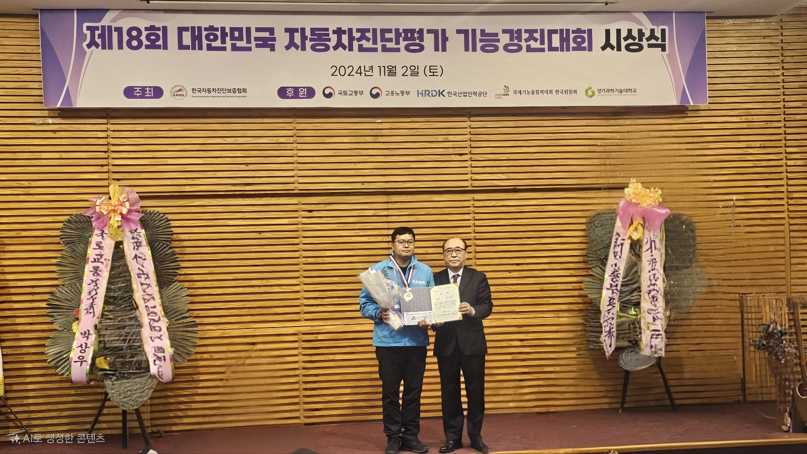 O. 우리대학(총장 김정수) 미래자동차과(학과장 봉필준)는 11월 2일(토) 경기과학기술대학교에서 개최된‘제 18회 대한민국 자동차진단평가 기능경진대회’에서 대상을 비롯한 금상, 은상 및 동상을 수상하는 영애를 안았다. 경진대회의 수상자는 다음과 같다. 일반부 부분 대상(국토교통부 장관상)에 2학년 김O영, 금상(국제기능올림픽한국원회 회장상)에 3학년 김O욱, 학생부 부분 은상(경기과학기술대학교 총장상)에 4학년 조O선, 동상(한국자동차진단보증협회 회장상)에 4학년 심O보 학생이 수상을 하였다. 또한 자동차진단평가 발전에 기여하고, 우수한 수상자들을 배출한 공로를 인정받아 단체상(한국자동차진단보증협회장상)과 우수지도자 표창장(국회의원상 – 봉필준교수, 송락현교수)을 수상하는 쾌거를 이루었다.